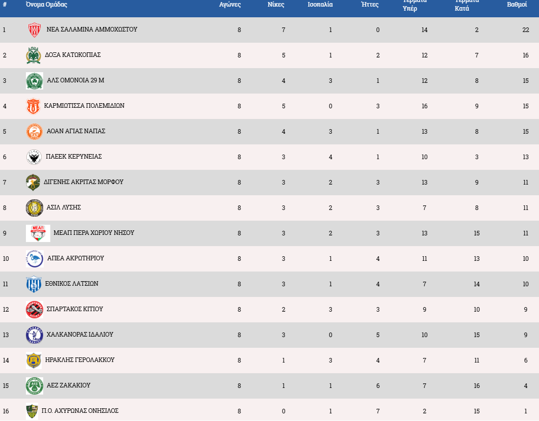 Η Ομόνοια 29ης Μαΐου απειλεί το αήττητο της Νέας Σαλαμίνας - Πρόγραμμα κα βαθμολογία