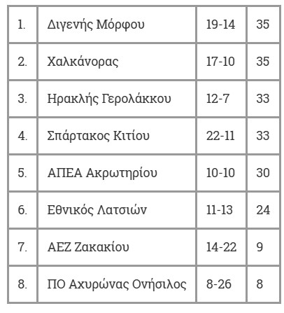 ΒΑΘΜΟΛΟΓΙΑ / Β' ΟΜΙΛΟΣ