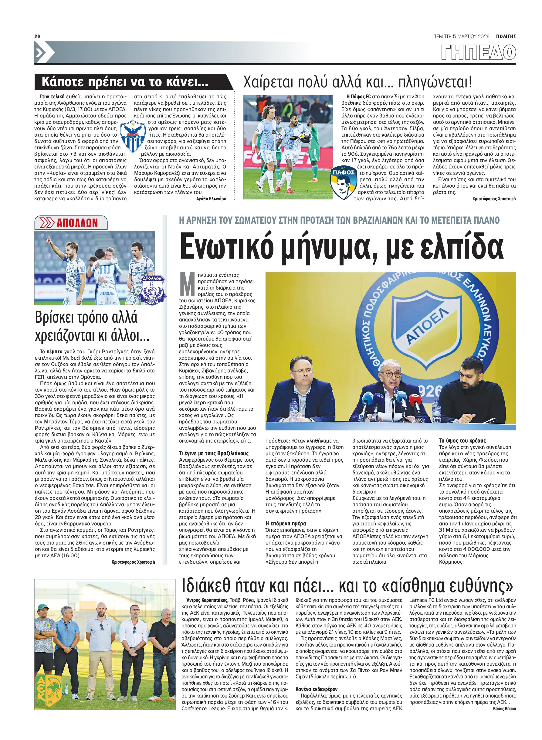 Ενωτικό μήνυμα, με ελπίδα